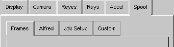 The Spooling panel controls aspects of the RIB generation process as well as what occurs after the RIB has been generated. The functions of the panel have been organized into several subpanels. Pressing one of the tabs provides access to the associated subpanel.